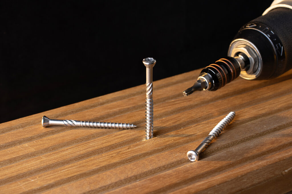 Toutes nos vis Woodies® Ultimate, en fonction de l’application, existent en diverses exécutions : galvanisé (jaune), Inox A2, Inox 410, Shield Outdoor bronze et noir. En outre, une grande partie des vis présente des caractéristiques innovantes comme par exemple une empreinte TX (Torx) extra-profonde pour une bonne résistance à l’arrachement et une pointe de coupe particulière qui supprime tout besoin de préperçage.
